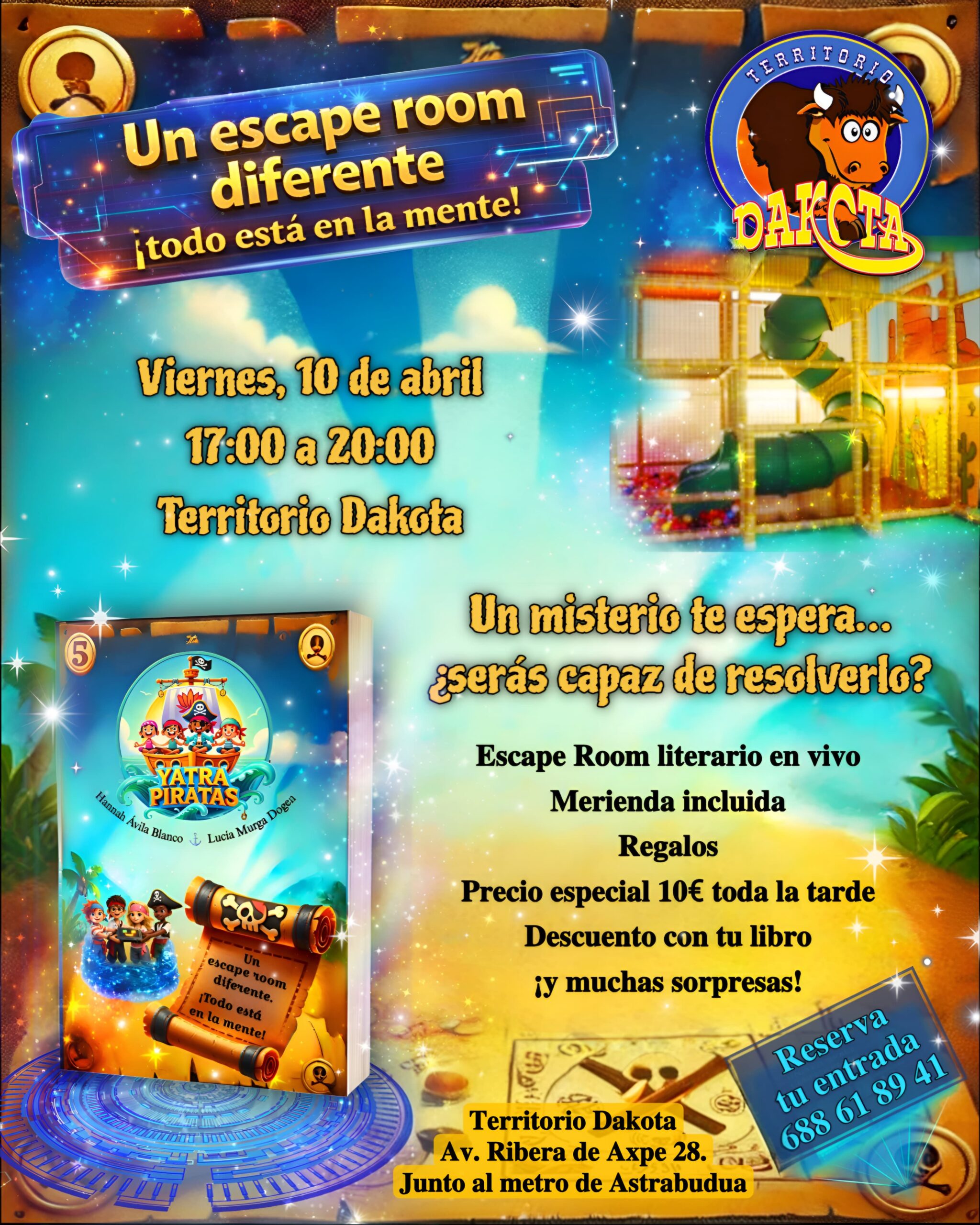 Un ESCAPE ROOM literario en vivo inspirado en el último libro Yatra Piratas, que tendrás que completar resolviendo pistas, superando pruebas y dejándote llevar por tu instinto de pirata